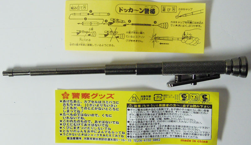 欲しいものはアソートレア以上なので出やしない訳だが・・キャンペーンにでも応募するかorz サーファーはボードだけ切り取ってしまおうかと思うのだが、フォアグラはおにぎりが横から見るとおにぎりじゃないだろコレ・・状態なんだよなあ('c_`;)<よりによってダブるとは ・警察グッズ 榎並産業のがちゃ。ミニカーっぽいライトがあってそれが欲しくて数回回してみるが・・ ・文字が浮き出るだけの警察プリズムシール ・イミフな警察マグネット ・やはりイミフな警察カードストラップ 1回¥100だがちょっと厳しいな。 で、一応アタリっぽいものが出た。 オール金属製で組立伸縮式の警棒なのだが・・カネキャップ(火薬キャップ)を先端にはめて遊ぶ、キャップガンの仲間ロボみたいなもので・・これはええなあ。。 サイズ的にはやまタコにフィットする位だが、、正直重過ぎる。。 ・・てゆーか、これ以上は回さない方が利口な気がするナリ('c_`;) PR