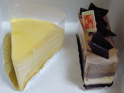 この辺で購入のケーキ 母はディサービスで食べて来たので(週1回位ならコレステロール高いものを食べても良いとは言われている)自分と供物共用。。 左:ミルクレープは、、クレープがモチモチしてるのかな? まあ比較してはイカンのだろうが件のフワフワクレープを思い出してしまったのである。。 右:フォレ・ノワール?だったかどうかはボケてきて覚えてないのだが・・甘さも控えめで丁度良くウマー。。 PR