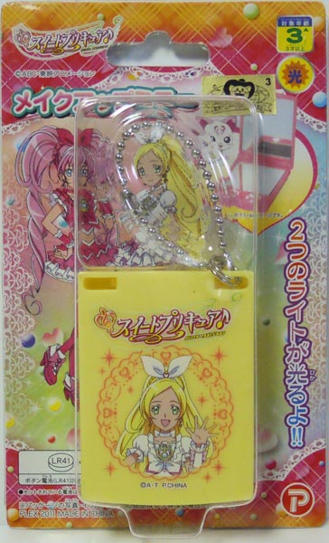 発売元:プレックス 販売代理店:マルカのミラー玩具x2点 ・スイートプリキュア メイクアップミラー toyk嫁ver.である・・まあ、不良在庫とかはともかく。。 白LED付き、鏡面が多少小さいが凹面鏡とかでは無いのでそれだけでも十分。。 ・・でも、もうちょっとパックリと開いてくれれば、2面分サイズミラーに出来るのに・・。 ・・てゆーか、ボールチェーンを繋げている金具を外せばそれだけで「ぱっくり嫁ミラー」だったのだ!! ・スイートプリキュア ひかる!レインボーパクト 色の変わるLEDである。鏡面の大きさはソコソコではあるが・・まあ、玩具だし。。 ・・落とすと大破しそうな気がしないでも無いのは気になるトコロ。。