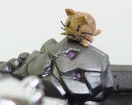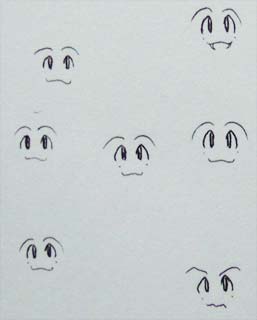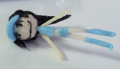 上手く行かねぇorz 顔はフェルトを半球状に案外上手く加工出来たと思ったのだが・・眼と口を自分の髪の毛を使用して再現しようと試みるも・・・・無理('A`)<爪で反りを付けて・・が小さすぎて無理だった。 仕方が無いので縒られている1本の糸を解して3本にしてそれを加工するが・・・・チビシイorz 胴体も芯軸にフェルトを巻き付けてみたが・・太すぎたので結局縒るだけになってしまい、、何だかなーなーの妥協で進行('c_`;) 髪の毛様の黒いフェルトがなかったので毛糸を植毛したが・・茶髪にした方が良かったかな・・。 それでもまあ、地面に転がしておくと愛嬌がないでもない<え~。。 おまけにデカイYo!(*ノノ) 元々PVCで作ろうと作業途中のものもあるのだが・・作業工程多いので放置中('c_`;) やっぱ手芸では無理だな('A`)・・次回は紙ででもやってみよう。。 追記 設定画:手芸用に設定した筈なのだが・・上手く行かなかったなあ('c_`;) ミニカー用のキャラとしては約13番目に当たる。 左の方は下絵無しで描いてみたが無理('A`)右下も失敗してるので・・てゆーか巧く描けないなあorz この墨汁ペン入れにコピックで色塗りして型押しすればと思ったのだが・・型押し形状固定用にボンド使うと墨汁にじむ予感<企画倒れ ま、色々試行錯誤してみよう('c_`;) やっぱり紙では無理でしたorz |