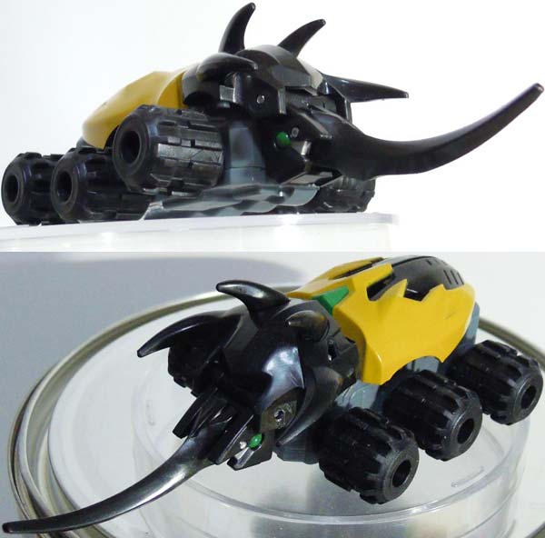 ドリルパーツを使っての2軸回転を試験的にやってみたのだが・・安定性に欠けてしまい撮影にも一苦労('c_`;) で、クワガタはロボヘッドに向かないし・・カブトヘッドも保存・観賞用除けばロボっぽく出来るのは使い果たしてしまった感じである。。 4号崩壊後にその場で組んだスーパーロングアーマー(まだ伸ばせるのだが) う~ん。。カスタムBOXがもっとあればウネウネに動かせるのだがなあ・・。 で、片付ける途中で折り曲げてみると・・ビークルっぽくなった。。 ミクロには多少大きくミニリボマリがジャストフィット 制服シャルは足先微調整してギリギリサイズと言ったトコロかなあ・・。 もっともっと買って置けば良かったと思わないでもないが・・何にせよカブトボーグはええ玩具やなあ。。 |