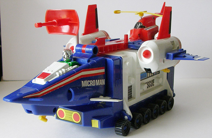 本体が通常ミクロマンよりも一回り大きく、背中の5ミリジョイントも邪魔なパンチアクションボタンの為。。実質的にパンチが搭乗出来る様に設計されているマシンは、この2点と→ローリングサンダーのみ('A`) 2010/3/2:画像追加