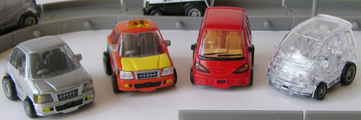 ミクロマンのロードステーション基地のレールを何処までも伸ばして→ミクロマンカーを走らせてみたいと言う憧れを持っていたワタスには、ロードもの玩具はある意味憧れの対象でもありまして。。 「カプセルタウン」を地元で見つけた時に結構回してみたのですが・・ 周回出来てないよ;ヽ(`Д´)ノウワァァン 調べてみると、シリーズ自体はタウン~シティまでかなり出ていたのですが・・結局地元には第1弾しか入る事はなく('A`)<中途半端ブギ ・・まあ、それでもヤフオクなんかには在庫はある様なので(人気のものは無いorz)揃えようと思えば揃えられるし・・最悪型取りも出来るので、取り敢えずは放置。。 サイズは、ほぼチョロQと一緒ですがゼンマイはスローエンジン。。 とは言ってもイマイチ性能は思わしくなく・・むしろチョロQ走らせた方がいい感じもする訳で('c_`;) 一方、動力無しの内部再現バージョンもある訳で・・その辺別の意味での魅力も無いではない(クリアはとことんクリア過ぎるのが難点ではあるけどまあ、塗装・改造用と考えれば) フィギュアもありーの。 ・古の未来都市像 子供の頃描かれていた未来都市なんかは、無人のコンピューターカー(何か呼称があったのだけど忘れたorz)が都市内を走り回っていて・・行き先を入力するだけで最短時間で目的地へ移動できる(<多分無料≪そんな未来は米国主導の世界では不可能である事も大人になって知ったorz) ・・みたいな妄想を植え付けられている事もあって、都市(街)的なロード玩具への憧れは強い訳ですが。。 この辺、調べてみるとプラレールの姉妹品にプラロードと言うものがあったらしく・・現在は何故か生産中止になっているとの事(市場在庫はまだある。) チョロQのコースにしてもそうなのだけど・・日本はロード(コース)ものは当たらないのだろうかなあ('c_`;)<狭いからかな? そう言えば、昔トミカパーキングにも憧れていたのを思い出しまスた。。 プラロードも欲スい度は高いのですが・・既に曲線ロードの単品売りが品薄状態なので、時既に遅しな印象は否めない('A`)<買うならカプセルタウンかな<出来はガチャレベルなのは否めないけど 自分用検索ワード:ユーがちゃ 周回完成て言うかゾンビシリーズが出ましたし。 PR |