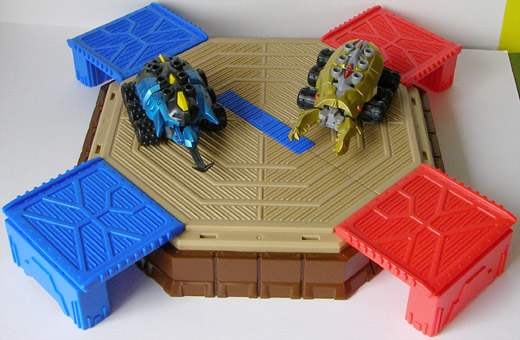森の切り株をイメージしたあまりに危険なバトルコロシアム!赤と青のコーナーにカブトボーグバトルもMAXヒート!!