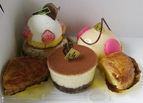 で、当日。。曇天ながら危惧された雷雨にもならなかったので隣町のパティスリー→ここの記事に外出しまそた:(‘ー‘)ノ 手前両脇はピティビエ(ピティヴィエ?)・・明日食べます。 中央はマスカル・・割りとフツーでしたがハスカップのジャム?のアクセントの部分はウマウマでした。。 奥右側:ミニョン・・横に張り付いてるのはマカロン。。何かのジャム(オイオイ)の部分的歯ざわりが特徴的ですが(゚Д゚):ウマー! 奥左側:アールグレイ・・スポンジが弾力があって据わりが悪いのですが・・酸味の効いた小さめのイチゴ、甘さ控えめのウマウマクリーム・・そしてアールグレイの香りと。。(゚Д゚):ウママママー! タルトも買いましたが名前忘れたorz・・これも明日食べます。 そして、表面ツルツルタイプのマカロンも売ってましたよん:ヽ(゚▽゚)ノ<ヤター 左のピンクのものだけ食べてみましたが・・(゚Д゚):ウマー! 間はミニョンの中身のジャムと同じだと思うのですが・・つまりはド忘れorz 今まで生きてきて・・誕生日にこんな上手いスイーツを食べたのは、初めて(夏場だからね。)だそよ:(‘ー‘)ノ 結果的には、通販で買わずとも十二分に満足ナリ。。 PR |