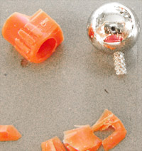 この様に鉄球が透けて見える程削り込まねばならず強度的には不安も付きまとう。。