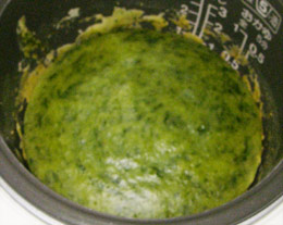 見た目とは裏腹にホウレン草の味も香りもナッシング。。