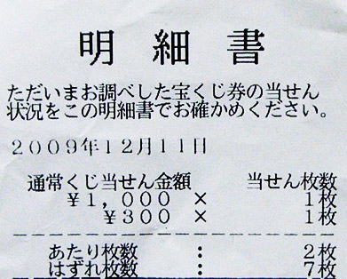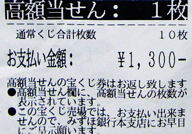 ああ。まあ、思っていたよりは高額だった。でも今まで宝くじに投資してきた金額が・・自分購入額なら黒字