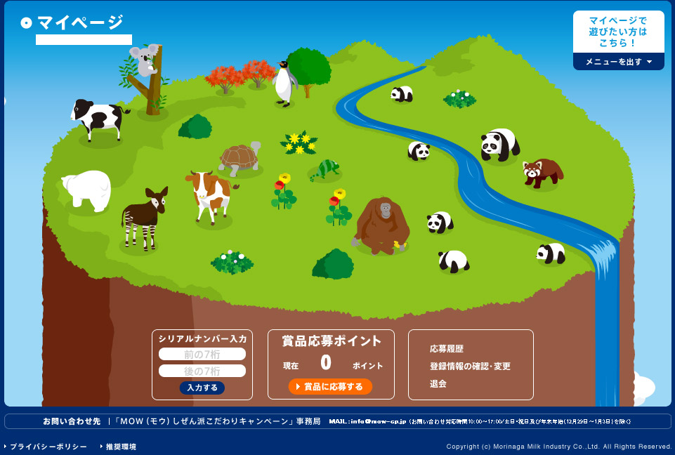 昨年のMOW(モウ)しぜん派こだわりキャンペーンのマイページ