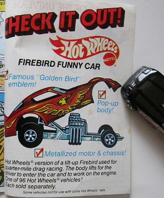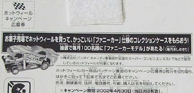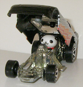 最初に農協で食玩ホットウィールを見かけた時に思い出したのが「ファニーカー」 ・・と言ってもこれの事では無かった様で。。 つまりはマスターズ・オブ・ザ・ユニバースに同梱されていたオマケアメコミの広告のファニーカーであった訳だが・・ 車種が違ってたんだな('c_`;) こちらは正式には「PROBE FUNNY CAR」→参照と言う事の様である。。 バンダイの日本展開時には海外で5点パックのものがシングルで販売されている事もあった様で・・自分所有の食玩バージョンの数点もそう言うものである事が分った。。 ・・とは言うものの塗装はお粗末な上に剥がれて来てら('c_`;) それでもいざ撮影してみると・・カッコ良さに気付くと共に愛着が沸いてくる。。 パカン! 当時は応募券でプレゼントもあったのだけど・・応募券を切り取るのが嫌だった事と当りそうもない気がしたので、結局応募はしなかったのだが・・今になって後悔orz 大事に取って置いたところで・・自分の老いの前では虚しいだけである。。 それはさて置き再びミニパンタロンを乗せてみる ワーイ☆ ゴチン☆ キチンと閉まらないや('c_`;) ちなみにこの台紙の食玩版は地元には入らず、、隣町での購入でスた。。 PR |