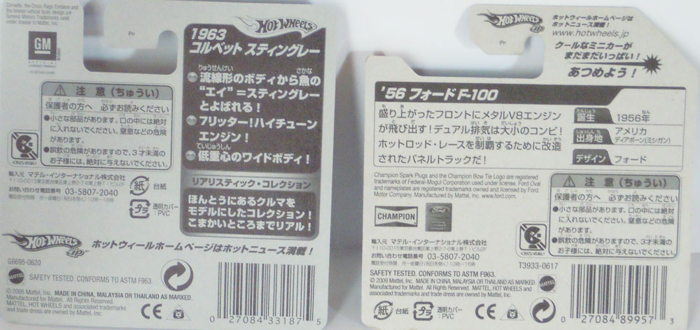 台紙の裏・・リアリスティック・コレクション分類だが、、これで合ってるのかなあ?? ・1963 CORVETTE STING RAY(DROP TOPS) DROP TOPSシリーズと言う事でかなりのデフォルメアレンジがされている。 これも地元のホームセンターで買った1台。アレンジはまあ許容範囲かな ・'56 FORD F-100(56 FORD TRUCK) 底の表記は'56 FORDだけどベースが共通で色々とあるのだろうな。公式には56 FORD TRUCKらしいのだが、、実にややこしい。。 これはトイザらスでの購入。適当に摘んだので、ライトのズレが('A`) 同車種は→この時の2パックで初入手、、追加で欲しくなったので購入。。 パカッと・・。 PR |
