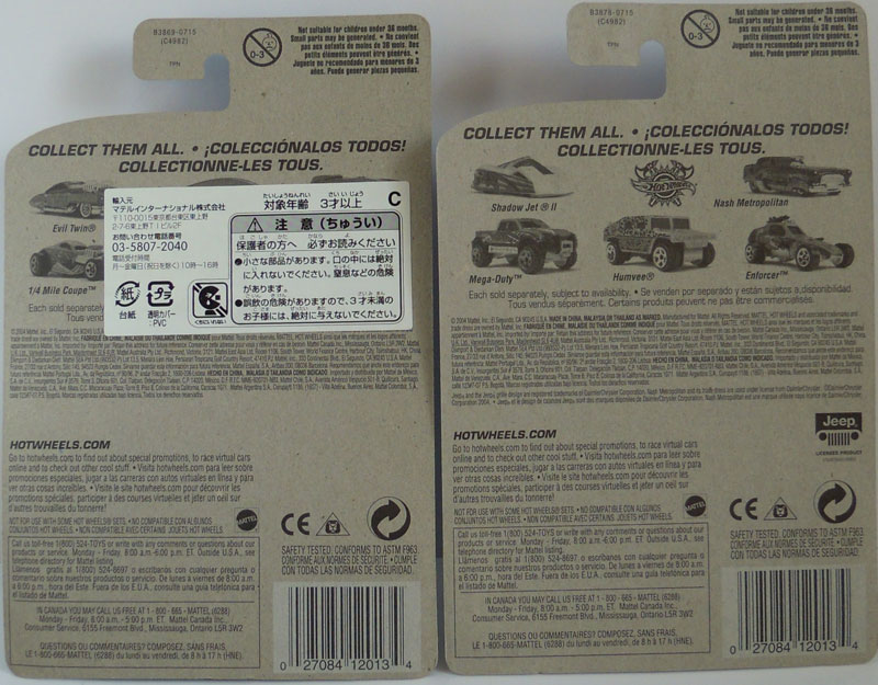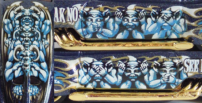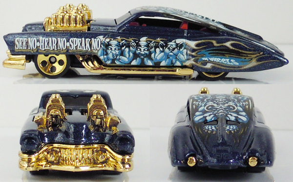 ・EVIL TWIN 牙付き車、、有名ドコだが特に欲しいと思った事も無く(オイオイ) バリとしても微妙なところだがこれも何かの縁ではあろうと・・最も開封するとそれなりに満足はしたのではあるが。。 両脇に見ざる・聞かざる・言わざるのデーモン(らしい)とルーフに見る・聞く・叫ぶのデーモン。。両サイドは反転絵かと思ったら微妙に違う様だなあ。。 ゴチャゴチャしてはいるのだがトータルとしては渋さを感じるなあ。。 ・NASH METROPOLITAN (METRORAIL) こちらは別の変な日本語のバリが欲しいと思っていたのだが・・入手したのはこのバリエーション(ふとバリエーションと言う表現でいいのかなあ・・と思った) タンポの印象がおどろおどろしく・・映画のミストを連想するのは、まあワタスだけだろうが・・ゴーストカーっぽい雰囲気は出ている私見。。 これと同じセグメントであった。 何となくの撮り直し+意味不明の追加画像 PR |