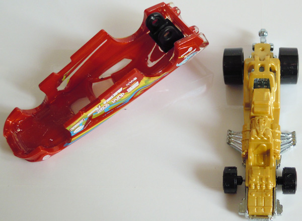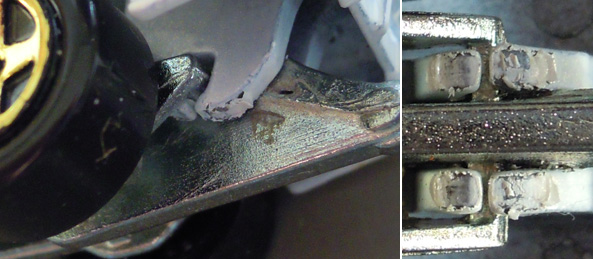 ・・ってゆーか全然閉まらねえ!FORD MUSTANG FUNNY CAR ・FORD MUSTANG FUNNY CAR 閉じる様に修正したいのだが・・どうやってバラせばいいのか分らんなあ。。 ・FUNNY SIDE UP 1stカラーが入手出来ずの2ndカラー。。 カウルはシステムインジェクション??・・みたいな一体成型で2ndのクリアウィンドウを1stと組替え・・とかは無理('A`) 意図したものなのかどうかは不明だが赤プラ部分に模様みたいなものがうかがえる。。 ただコストがかかり過ぎてるのかなあ1stではメッキだった部分がただのプラに。。 こちらは簡単に外せる・・と言う事で、、FORD MUSTANG FUNNY CARを閉じる様に且つFUNNY SIDE UPにメッキパーツを・・などとロクでも無い事を既に実行してしまった。。 ・内装交換 ・・と言うよりはエンジン部交換と言う方が正しいのだろうかな?? 一見ほぼ同じに見えたのだが実際にはかなり違っていて結構てこずるハメに('c_`;) こちらはカウル部を外すのに四苦八苦。。交換しても何処かが干渉して中々閉じなかったが・・アチコチ削って何とか閉じる様には出来た<元のパーツだとメッキ部分を削らないと無理な気が。。 ただカウルで四苦八苦した時にホイールメッキがかなり剥げてしまったのだorz こちらはシステムインジェクションの分厚い部分を削るのが主な作業なのだが・・中々何処が干渉しているのか分らず四苦八苦。。 メッキパーツも多少後退させなければならず2分割して削り込んで・・出来てしまったスキマには意味不明のクリアパーツをはめ込むと言う謎作業('c_`;) メッキ剥げA・メッキ剥げBと削り込み失敗で出来た穴('A`)<ホイールは外して作業するべきだったのか 一度作ったがロストしたので作り直した後部追加パーツ(タイヤ止め+フレーム固定パーツ) ・・で、メッキが剥げるならあまり交換の意味は無かった気がする。。後は現状微妙にキチンと閉まらない('c_`;)<微調整してもあんまり変わらないので後部に閉じて固定用のパーツをハメた方が楽な気がする。。 そもそも金メッキの別バリFUNNY SIDE UPが出るのを待てば良かったのだろうが・・コスト的にこのままキャスト自体フェードアウトしてしまいそうな不安も無いではない・・。 追記バリ PR |