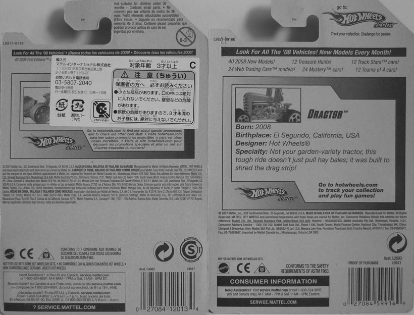 で、ザラスで購入のSPECTORとattictoyz (アティックトイズ)さんから購入のDRAGTOR・・’08FEのx2点。。 ・SPECTOR ふたばで見てもサイボーグライダーみたいだな・・とは思ったものの特に欲しいとは思わなかったのだが、実店舗に出かける機会が少ないので買ってしまった・・みたいな感じだったのだろう多分<記憶劣化 ・DRAGTOR これはふたばを見ての衝動買い。 何か書いてあるなと思って見てたらパカっと外れた。。 HOT WHEELS FARM CO・・かな??<もう老眼でのう・・。 色々乗せて見たが合うのはこの辺かな・・それでも選択肢は割りと広いよなあ。。 まあ、収納ケースの都合上 DRAGTORの開封を迫られただけだったのだけど。。 PR |