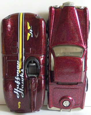 ・STUTZ BLACKHAWK 車種自体は前から欲しかったのであるが・・色は、、メタフレ・バーガンディより多少薄く感じる。。 ・・と言ってもどちらも公式にはメタリック・ダークレッド区分でメタフレ・バーガンディと言う色分け自体曖昧でもあるのだが(自分的には 2000年のボーナスカーに使われた特別な色と言うイメージ) まあ、言う程違いは無い様に見えたり見えなかったりするのである('c_`;) ・LOTUS ESPRIT これはもうカコイイスパイフォースシリーズの1点と言う事で、地味にオクでも検索かけていたのでありんすよ。。 ここまで揃うと残りの1つも揃えたいなあ・・。 PR |