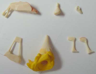 最もJET THREAT 3.0のキャノピー開閉はインチキながら終了しているので先にUPる で、キャノピーの開閉方法だが・・巧い方法が思い付かなかったのでインチキ開閉にしてしまったのである('c_`;) A部分にクリップの軸を埋め込んでキャノピーの隙間部分をはめ込むと言うインチキ開閉ギミック('c_`;)<軸部分を2本にするか板状のものにしてキャノピーの隙間にストッパーを接着すればそれなりに出来た気がしないでもない。。 一応プラ部分の反りを修正する為に、先端の上下キャストを噛ませる部分にABSパーツを貼り付けて組んではいるのだが、やった事はそれとBCのシート部分の加工位。。 で、シート部分の加工なのだが・・ シート底部を削り込めるだけ削り込み、足を入れられる部分を作って・・ このフィギュアを載せる為には左右幅つまりはキャスト部分を削らないと無理なのだが・・そこまですると面倒臭い<ダメじゃん! で、この際だから前から構想だけは持ち続けていた「ミニフィグ自作」をやってみよう・・と。。 ・・・・・そして難航('A`) 左:顔までは何とか出来たのだが・・小さすぎて老眼の身ではチビシ過ぎるのであるorz 中央:立ち用胴体やら搭乗時用胴体なのだが・・微調整段階で使用不可能になったパーツもちらほら('c_`;) 右:バイザーなのだがペーパー掛けの負荷で白化部分が・・このサイズの作業はチビシイorz 取り敢えず大きさ比較なのだが・・1/144に比べれば作業は十分余裕じゃん!! ・・自分には無理orz 最も難航の最大の理由は、、急いで作業してパーツを大破してしまうと・・再作業する気力は出そうに無く永遠に頓挫してしまう可能性が高いと言う気持ちの弱さが原因なのではあるがなあ('c_`;) PR |