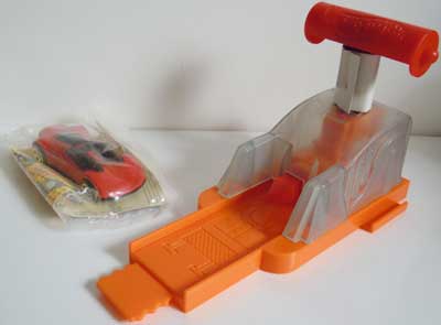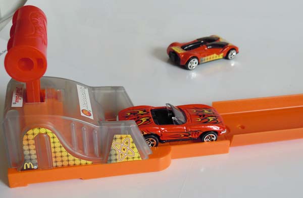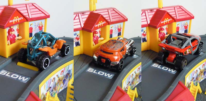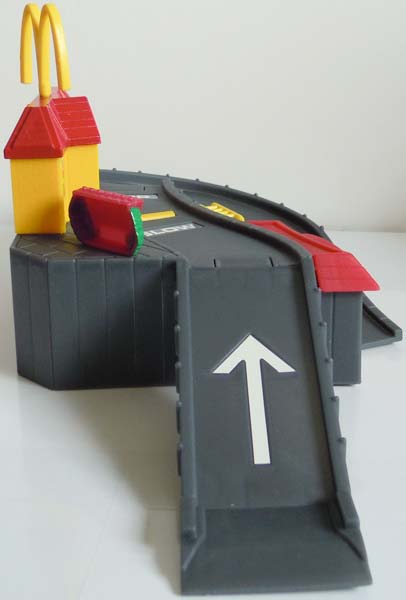 この辺のオク品:ハッピーミールのPROTRONIC LAUNCHER(2002)と この辺のオク品:ホットウィール ミニプレイセット マクドナルド(2002) ・PROTRONIC LAUNCHER 左:外袋から取り出し 中:同梱チラシ 右:ランチャーにシール貼り後・・ミニカーもシール貼りなんで迷った訳だが、、 ・付属ミニカー(DOUBLE CROSS) 名称刻印は無いがハッピーミール版のDOUBLE CROSSと同キャストなので、他に呼びようも無い。。 曲面貼りなんで剥がれて来るのだろうが・・思い切ってシールは貼ってしまった。 シール張りと言うのも、何だかいかにも玩具っぽくて・・ええなあと思ってしまった。。 ・ホットウィール ミニプレイセット マクドナルド ギミックは日本語シールを参照。車両の重さでオートで発動してくれる様なギミックでは無いのだ('c_`;) で、この2点を接続しようと思った訳だが だが、何と寝ぼけて購入したプレイセットのレールを使う事で接続は可能だったので、、早速、遊んでみる事に・・ このランチャーでは打ち出せない車種や('c_`;) で、色々試してみたのだが・・ 軽いものはコースアウト・・重いものは登り切れずで、一番上手く行ったのがパワーサンダーだった (通常はシール貼りのSLOWとSTOPの窪みで停まってしまうのだが・・上手く行けばそのまま降りてくる事もある) ストレスが溜まっていた事もあるのだろうが、気付けば1時間程遊んでいたのである。。そして、良く見れば塗料片やら金属片がチラホラと・・。 まあ、元々遊ぶ為に買っているのでその辺は別に構わないのだが。。 マックのドライブスルーも、遥か昔に数回利用した事しか無いのだが・・初めての時はドキドキワクワクだったなあ。。 PR |