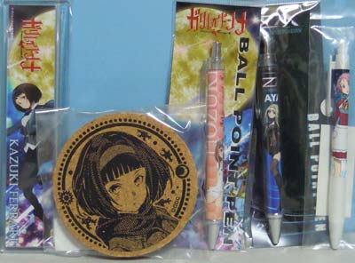 コースターで痛アニメキャップでも作ろうかなあと思った延長上でガリレイドンナグッズとオタボールペンを・・右端のボールペンの方が使い易いのだがパール仕様なので劣化破損は気になる。