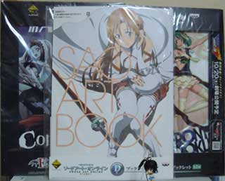 右:オク品のアイマリンのステッカーとパチスロのB4カタログ。中身は画集収録の立ち絵ページ以外は特に見るべきものは無い様な気もしたがりんしん絵B4アイテムと思えばそれはまあ・・。
