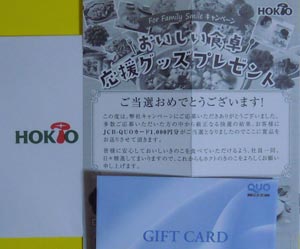 んで帰宅するとホクトのキャンペーン:クオカードが当選してた。。ホクトさんありがとう☆