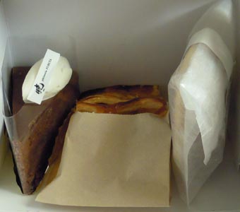 兄に供えるチョコレートケーキ、母へ供えるアップルパイ、父へ供えるどら焼き。。