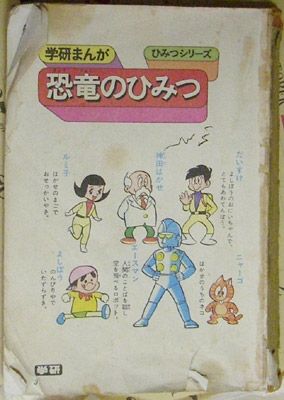 そんな訳で玩具ばっかり買っているアフォの子はあまり漫画を買う事はなくー 理由は金銭的に全く手が回らない事ともうひとつ・・コミックスは字が小さくて近眼になるからダメ!・・俗に言う家庭内漫画禁止条例でありんす。 しかし素晴らしい事に、この条例に当てはまらず且つ親の金で買う事の出来た漫画があったのである。 それこそが・・俗に言う学習まんがシリーズなのであたー。 事のいきさつはどうだったのだろうか?書店で偶然見つけたか、あるいは学研の科学と学習の広告ででも見たからだろうか・・ 突然兄が学研まんがひみつシリーズ「宇宙のひみつ」を買ってきた・・ハードカバーでホイル仕様のキラ表紙。サイズも大きく禁止条例にも引っ掛からないフルカラーも随所に散りばめられた何とも魅惑の漫画シリーズであった。 早速自分も便乗で買ってもらう事に成功!それが既に表紙も無くボロボロの 恐竜のひみつであった(旧版) 神田はかせの作り出したタイムマシンで案内役ロボットエースマンと共に 恐竜の世界へ旅立つドキドキ物語 これぞ漫画と言う展開と挿絵による恐竜世界の再現は、正に怪獣少年(<怪獣かよ)の憧れそのものを描写していた。 (何せボロボロで著者名のページも無くネットで漫画は川崎てつお先生と わかったもののもう一つの魅力である恐竜の挿絵がどなたのものなのかわかりません。A.NAKANISHIとのサインがある様です) 今となっては学術的に修正されてしまった部分も多く再販は難しいのが残念 告白:この漫画を読んで当時の自分は考古学者に憧れ、恐竜の化石を発掘しようと試みた・・だが、出てきたのはヤジリと土器ばかりだったorz 実は、縄文時代の貴重な遺跡も発見された地域で、後に新聞に掲載されたモノスゴイお宝と同じものも発見したのだが・・恐竜の化石にしか興味が無かったので捨ててしまった・・なんの学習にもなっていなかったのだorz 他に学研まんがひみつシリーズは兄が地球のひみつ自分が忍術・手品のひみつ(もはや学習漫画ではないとの説)を持っていたが・・ねずみにかじられたり引っ越したりで・・無くなってしまった。。 学研の学習漫画としては、他に→日本の歴史シリーズ(復刊ドットコムの頁) があり、特に斉藤道三を扱った国盗り稲葉城 一介の油売りから一国の主になるまでの下克上物語は読み応えがあり、ものすごく面白かった為・・次々と続巻を揃えてしまった・・自分の金じゃないから。 ・・今でもチャンスがあれば下克上!(謎 PR |
