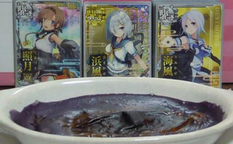 照月、浜風、海風の進水日をまとめて・・謎のブルーベリースイーツグラタンを。。おやつとしては有りだがバースデイ用では無かったなもうちょっと突き詰めればいいのかも知れんが、、