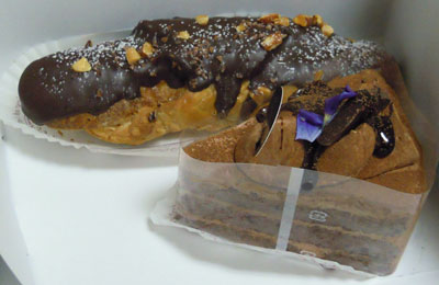 チョコレートケーキと何か自分の食べたいものと思っていたのだが亡兄の好きだったエクレアらしきものがあったので結局それを購入:パイエクレアであるが、美味しかった。。