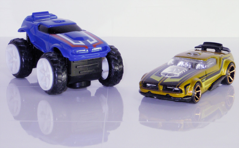 で、組んでみたもののイマイチ頼りない割りにでけえ・・。 スカイハイスピードウェイプレイセット付属のレブアップ(左)は多分FAST FISH ・・てゆーか、単品は持っている車種が無かった('c_`;) で、プレイセットで遊んでみる訳だが・・海外のレビューでは子供には上手く出来ない上にすぐに飽きるとの事で・・・・・・うん。。 子供はすぐに飽きるかも知れない(オイオイ) でも、別室に置いておいて・・大人がたまにプレイする分には十分に楽しい。 ただ、流石にバーティキャニオンプレイセットと違って眺めての楽しさと言うかワクテカ感は無いカモ。。 他のレヴアップ。。予算の都合で1種は未購入('c_`;) BASSLINE:ピンボケたので側面のみ('c_`;) ・玩具としての旧レヴ・アップ(左:MEGA-DUTY?)との比較 旧タイプは多少小さく、シャーシの交換がプレイバリューのひとつだった(1個しか無いがorz) 今回購入のレブアップは磁石内臓タイプで、多少大きくシャーシの交換は簡単に出来る様にはなっていない。 そもそも仕様が違うので、専用のプレイセット以外では遊べる様にはなっちゃいない訳だが・・磁石タイプはデッパリの為バーティキャニオンの坂道すらまともには登れず、、かろうじて川底を走破出来る位で・・・・・つまりは、改造でもしないとプレイバリューは低いんじゃないか疑惑。。 そして走行速度の違い。磁石タイプは基本速めで、旧タイプの方が遅く走らせる事が出来る為、川底を走らせた時のワクテカ感はやはり旧タイプの方が上と言う事になる。。 まあ、磁石タイプも磁力で色んな所を走らせる分には楽しいのだが・・イメージを喚起する玩具としてはイマイチ魅力に欠ける気がする。 ・・まあ、玩具の魅力は己で魅入出してゆくものだろうが・・。 やっぱARACHNORODが欲しかったなあ(国内未発売)・・蜘蛛タイプの車が垂直な壁を登ると言う事はそれだけでイメージ喚起になるから。。 アラクノロッドは購入済み。だがプレイセットのゴムレールが取れてしまって1度も走らせてはいないのだ(何時か直そうと思ってたら何処かに消えた・爆) PR |