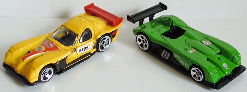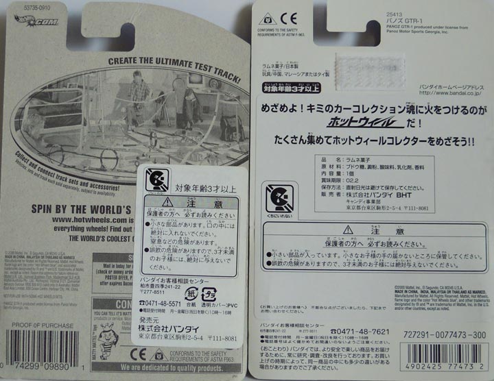 1枚目の2台の台紙裏は全く同じ。食玩版はキャンペーン終了後のシール貼り不良在庫。。