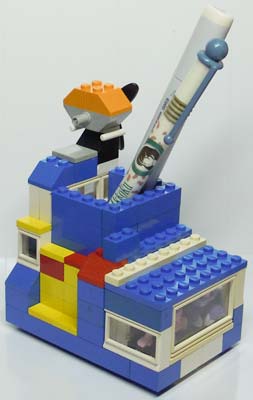 発掘したレゴで生活骨董と言うかペン立てを組んでみる。コマが少なくて居住空間にはモノアイスタイルしか入らなかったが('c_`;)
