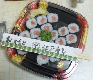 左:寿司折 右:供物ついでに買ったアップルパイ