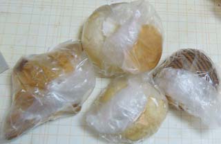 中:奥右は母のアップルパイ。左はシャンピニオンに似てたので買ったみたが・・パン生地の美味さが油の旨味っぽいと言うか、うn・・まあ多めのクリームメインのパンかな??