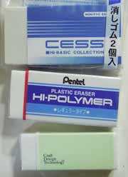 右の一番上の¥100ショップ消しゴム・・でかいけど品質はイマイチ、でも安いんで・・裏印刷とか塗装落とし用にはいいかなと思ったんだが、、でかいしこぼれカス対策の為に箱に収納。。