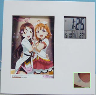 左:ポイントで購入した目覚ましと言うかフォトスタンド時計・・絵葉書サイズは適当な価格のものが無かったのでフォトサイズ。ヨーコの生写真ブロマイドとかホワイトのブロマイドとか引き出しは少なかったが、それでも何でも買って置くもんだなあと。。