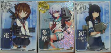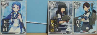 (改装設計図x1で磯波保留)初改が初雪:一昨日の通院後のお使い外出時のものが右だが吹雪はカード口に捨てられていた捨て吹雪、あとは初建造の初雪が保留状態・・って言うか、フラグは多摩と初雪か。。
