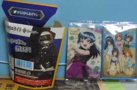 左:故郷通院時に追加買いしたウエハースのヨハネとガルパン水着。ヨハネは曜の次に率が高いのだがオマケ配布物は何時も入手し損ねてるなあ。。からあげクン買ったら裏にマシュが居た。