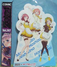 (裏は12月号)右は楽天ポイント購入のラブライブミニスタンドパネル。。思っていたよりもミニだったが材質はPPなので使い道はありそうな気がする。