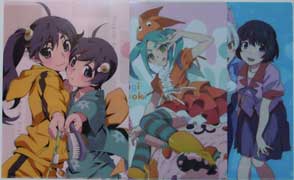 物語シリーズのクリアファイル。多忙の為午後になったが、全種x1ずつ無くなってはいたものの余裕で貰えた・・その後Fシスターズだけは無くなったが、後は残っている。