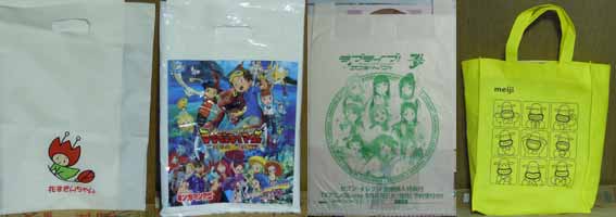 花博の袋?東映アニメフェアの袋、ラブライブサンシャインのレジ袋、カールおじさんのトート