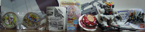 左:鬱ガチャアイテモだが、バンダイばかりと言う・・魔神メダルは金属メダルなんだな