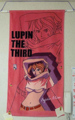 何時買ったのかはもう定かでは無いが、、バスタオルとして使うにもう~n。。的な感じでまあ当初の予定通りの壁張りであるのだが・・ルパンのピンズもその昔2個ほどアニメイトで回したガチャピンズがあったのでそれも使う事に。。